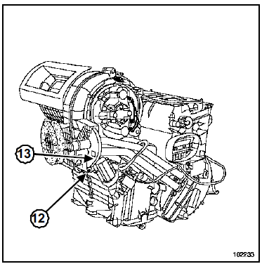| Nota : Déverrouiller la bride (13), puis la lever pour la sortir du bloc de chauffage. |